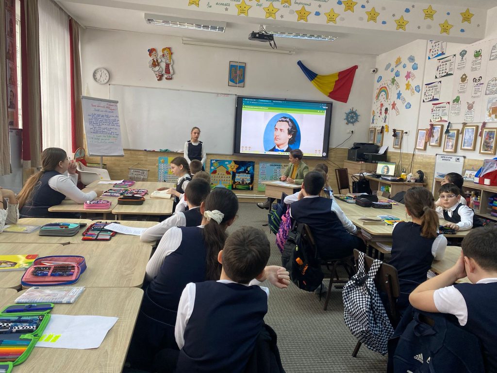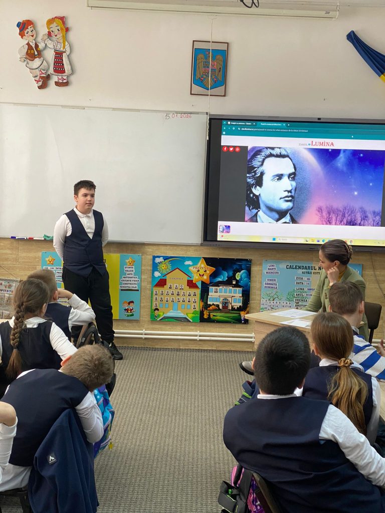 În cadrul orei, sala de curs s-a transformat intr-o scenă de festival literar. Fiecare elev și-a ales o poezie reprezentativă din opera ,,poetului nepereche” și a încercat să dea viață versurilor prin recitare. Atmosfera a fost una plină de emoție, copiii reușind să surprindă prin sensibilitate și dicție.