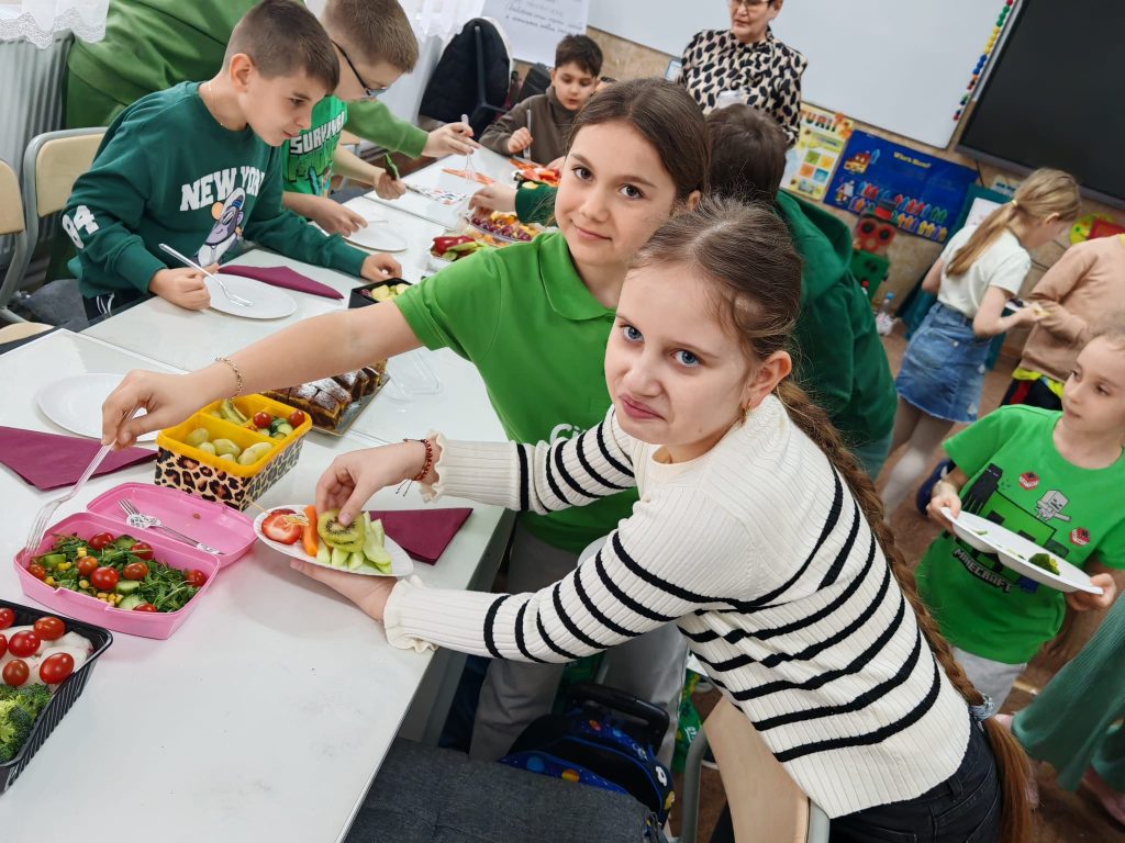 Ziua a-III-a , Săptămâna Verde! Elevii de la clasa a II a A -SBS , Școala ,,Mihail Sadoveanu ” s-au bucurat de un adevărat festin, la activitatea ,,Azi mâncăm VERDE! ” Au consumat doar fructe, legume și preparate gătite acasă. După masa copioasă s-au înveselit cu muzică și dans.